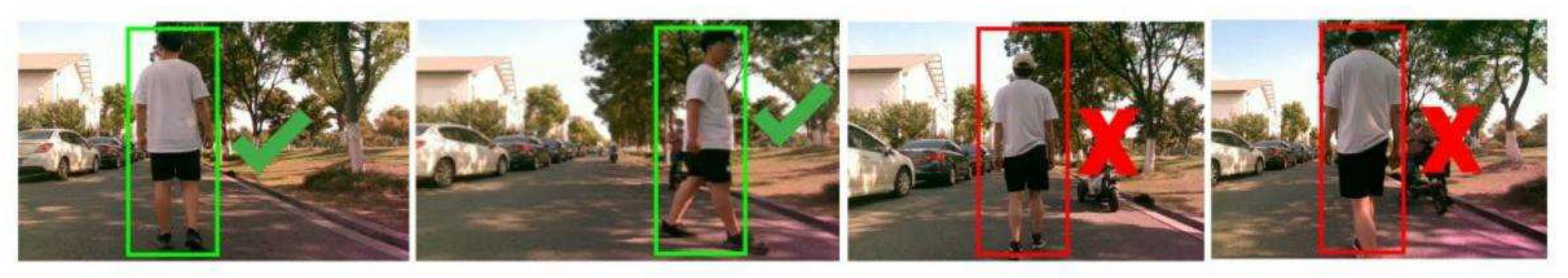 To assess the effectiveness of the ReID-based target discrimination method in dynamic tracking, offline video sequences are collected from multiple scenarios with various interference factors, as shown in