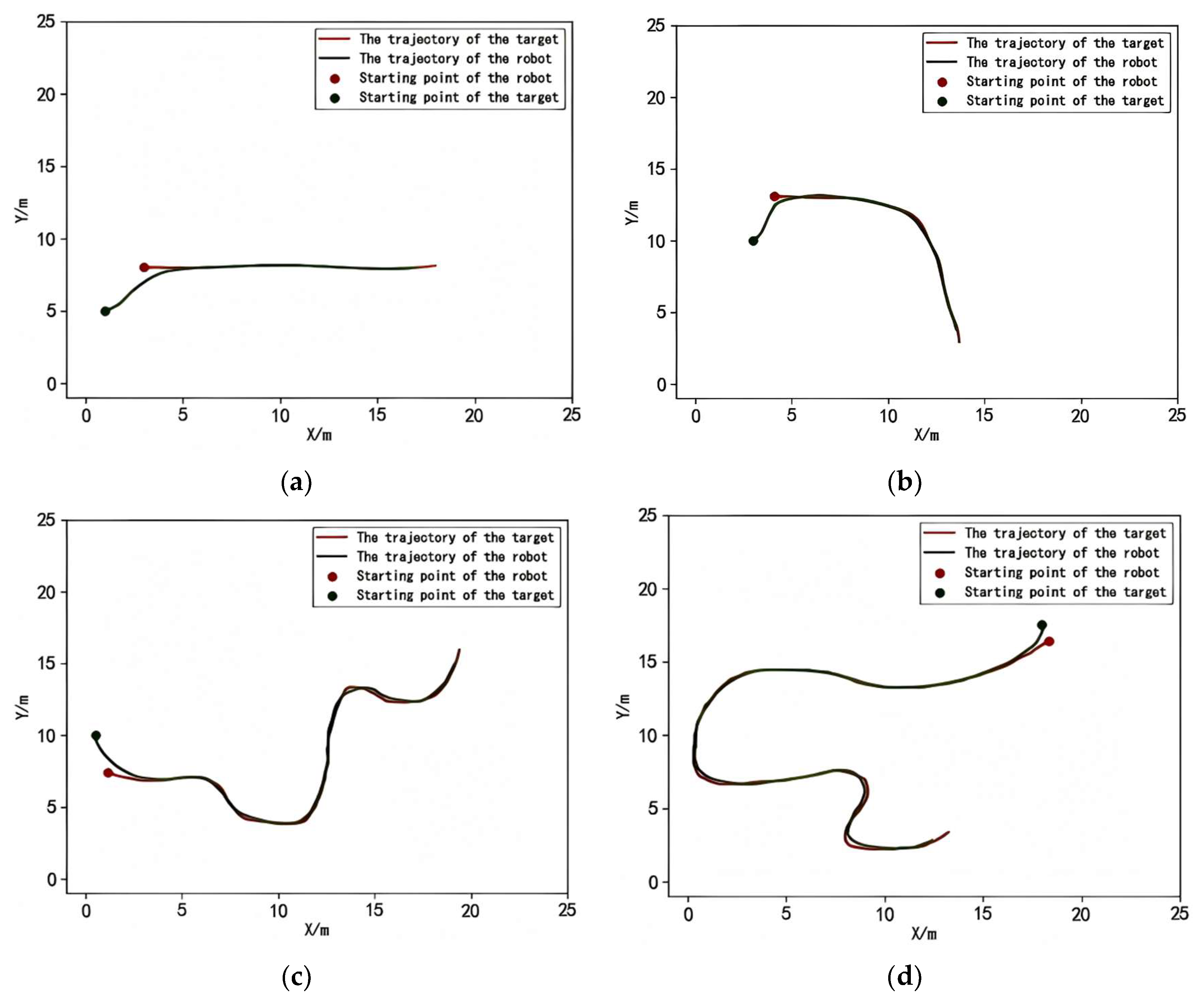 To evaluate the robot’s ability to track the target trajectory under the normal following state, an RTK-GPS module is installed on top of the robot, and a base station is deployed to record the motion trajectories of both the target and the robot. As shown in