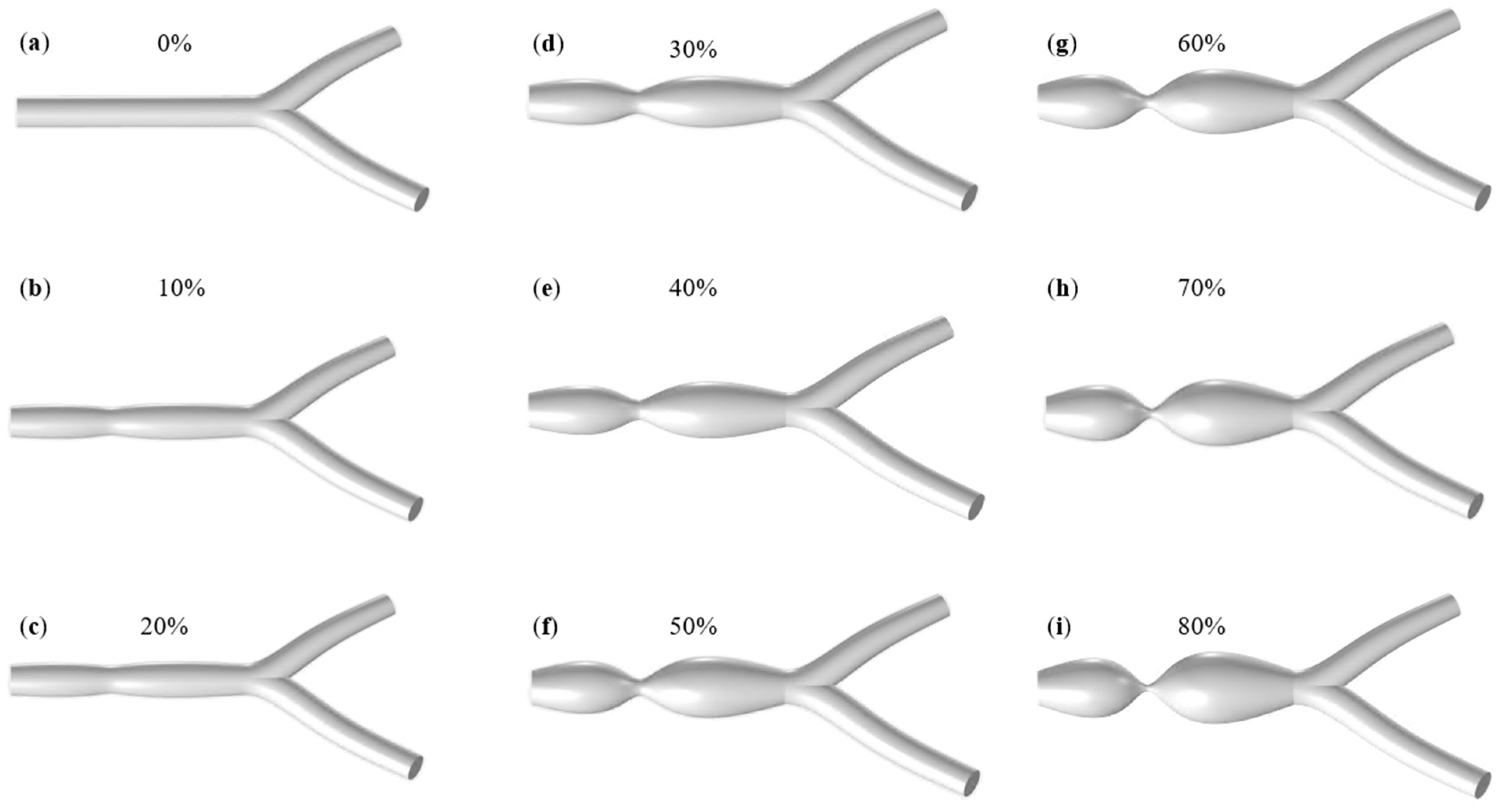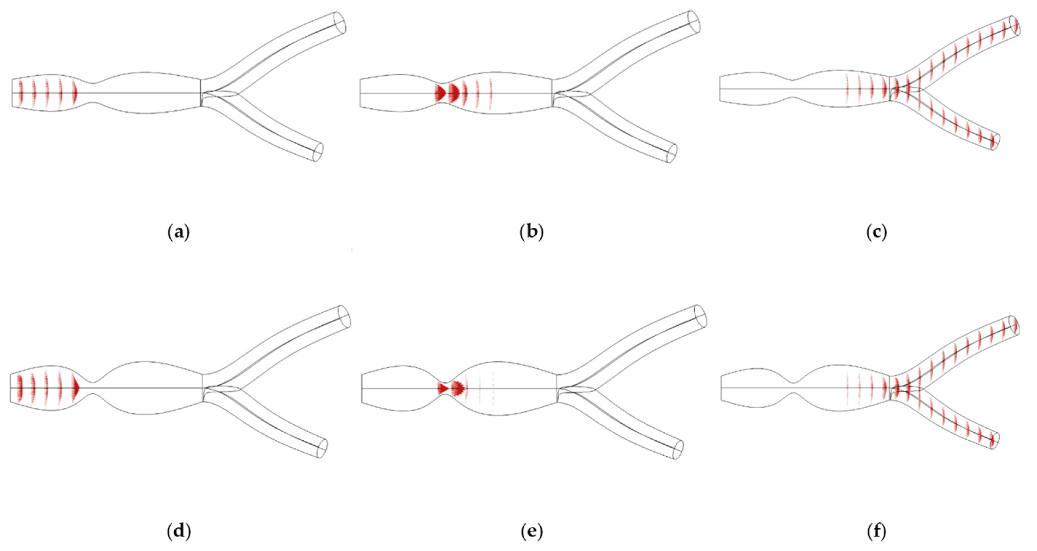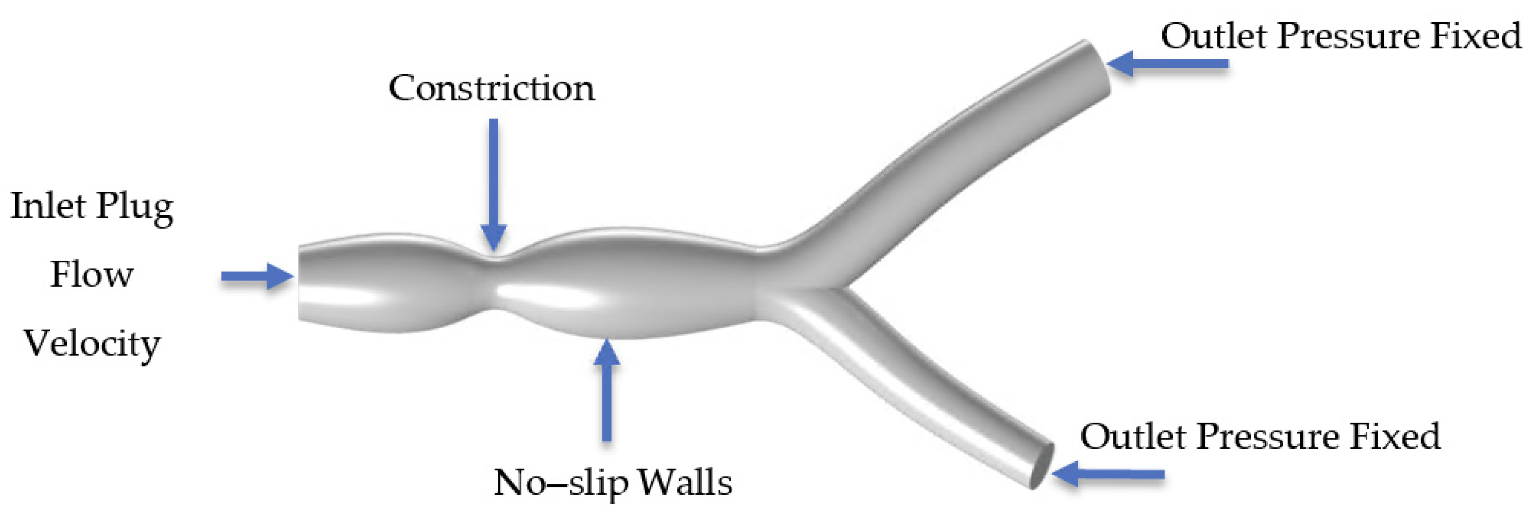 - Vignon-Clementel, I.E.; Figueroa, C.A.; Jansen, K.E.; Taylor, C.A. Outflow boundary conditions for 3D simulations of non-periodic blood flow and pressure fields in deformable arteries. Comput. Methods Biomech. Biomed. Eng. 2010, 13, 625–640. [Google Scholar] [CrossRef] [PubMed]