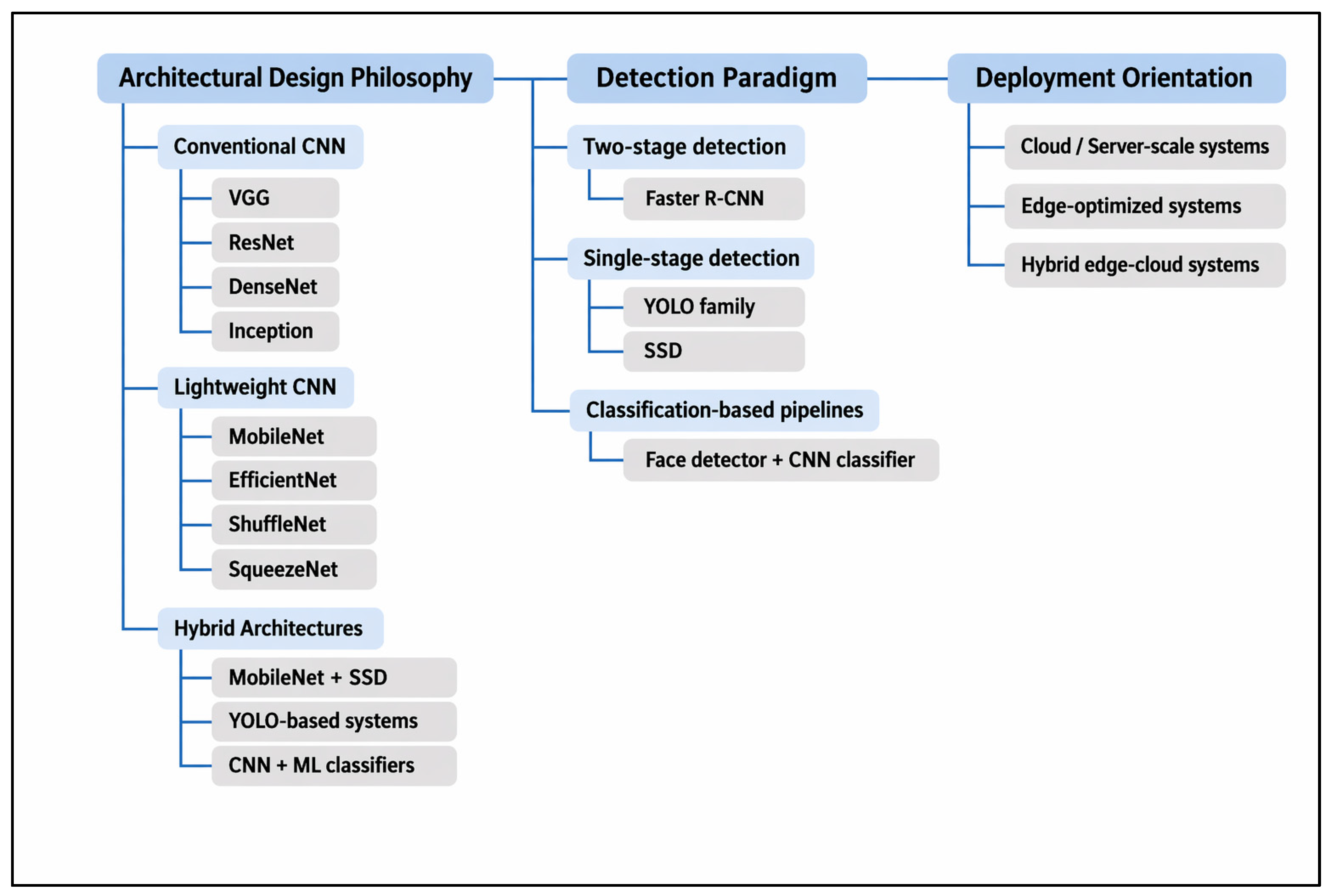 - Compare reported performance with respect to accuracy, inference efficiency, and deployment suitability.