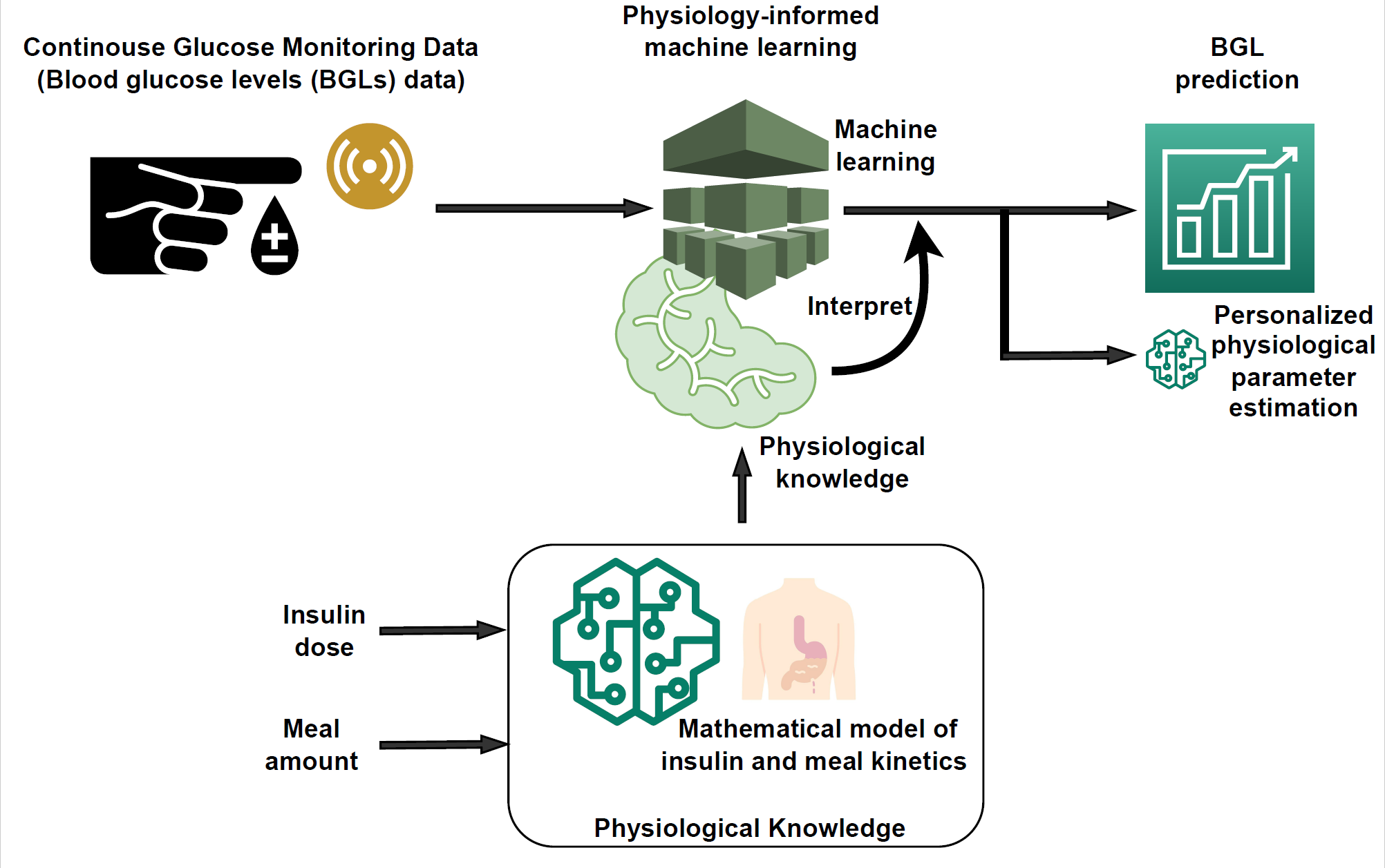 Physiological models mathematically describe glucose metabolism and kinetics. However, they require detailed knowledge of an individual’s physiological processes and prior configuration of numerous parameters [