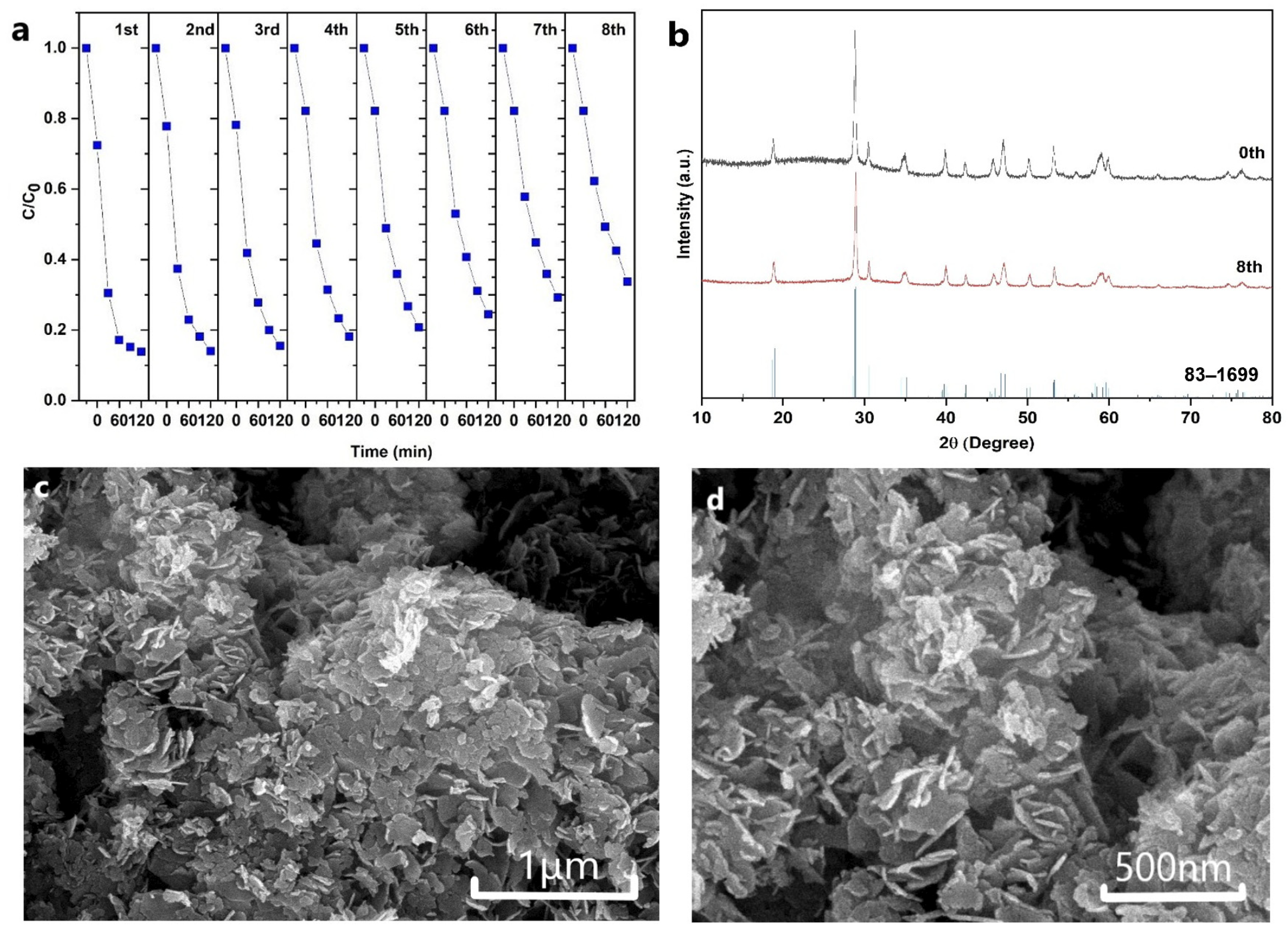2.5. Photocatalytic Stability Test of Catalyst