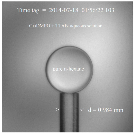 Mixed non-ionic/cationic surfactant components of the aqueous matrix solution (C13DMPO + TTAB) and of the adjoining hydrocarbon dispersed phase (pure n-hexane drop).