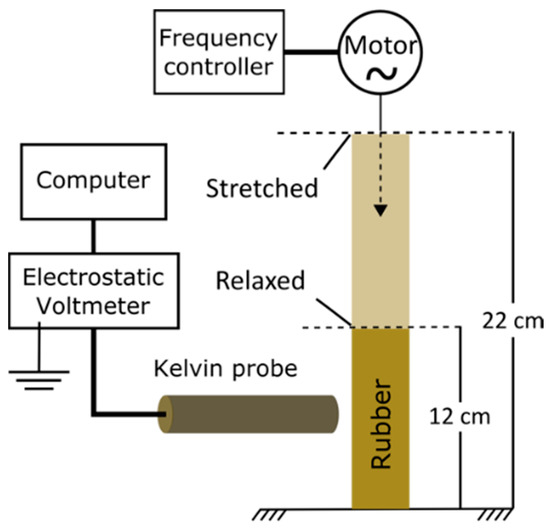 Schematic description of the apparatus used to measure electric potential on periodically stretched natural rubber.