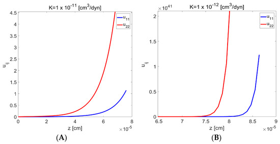 Jacobi’s functions and plotted against the length of the transition region ), for two different values of the elasticity coefficient,, (A) and (B). Reproduced with permission from [19]. Copyright © 2018 American Chemical Society.