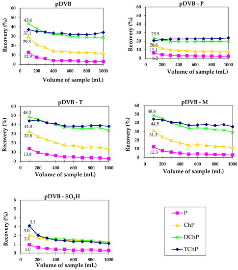 - Sobiesiak, M.; Podkoscielna, B. Preparation and characterization of porous DVB copolymers and their applicability for adsorption (solid-phase extraction) of phenol compounds. Appl. Surf. Sci. 2010, 257, 1222–1227. [Google Scholar] [CrossRef]