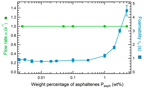 3.3.1. Impact of the Concentration of Asphaltenes on the Foamability