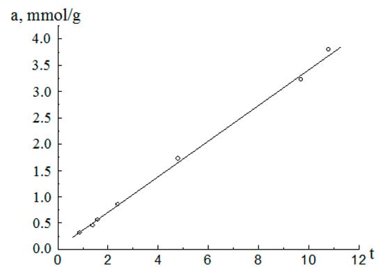 It was noted above that the adsorption process is characterized by two stages with different process parameters. Assuming the decreasing power function as the approximation for Equation (16), one obtains for the adsorption isotherm equation: