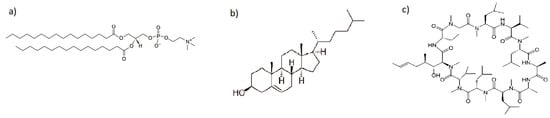 The structure of (a) DPPC,(b) Chol,(c) CsA.