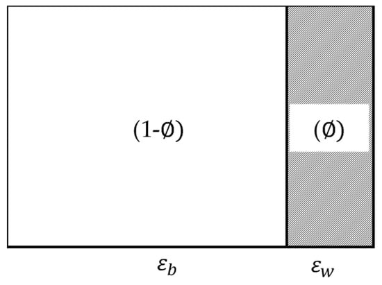 However, the experimental results of a previous study by Kobayashi and Adachi [22] confirmed the effectiveness of the simple additivity principle using a mixing vessel equipped with a Rushton-type stirrer. In order to explain these results, in this study, we introduced the concept of the heterogeneity of the turbulent flow. It is known that the value of ε near the impeller or the wall of a vessel is much higher than that for the rest of the space. Let us consider this situation by introducing a scenario corresponding to two regions as illustrated in Figure 1. The region near the wall is termed the wall region and has a volume fraction of and rate of energy dissipation of ε w . The rest of the space is termed as the bulk region and has a volume fraction of ( 1 ) and rate of energy dissipation of ε b . The average rate of energy dissipation can be written as