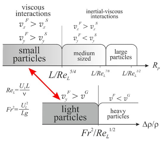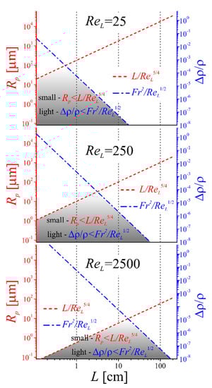 In Equation (22), g is the gravitational acceleration, ν is the kinematic fluid viscosity, Δρ/ρ is relative density of the particle inside the fluid (for neutrally buoyant particle, Δρ/ρ = 0.