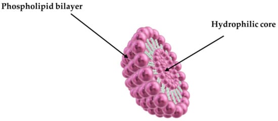 Conventional liposomes are considered to be the first generation of nanovesicular carriers. These are sphere-shaped vesicles comprising one or more phospholipid bilayers that enclose an inner aqueous core (Figure 4). Their size can range from 20 nm to several micrometers and they can have a single phospholipid bilayer (unilamellar vesicles) or multiple bilayers (multilamellar vesicles). Unilamellar vesicles are further classified into two categories: (1) small unilamellar vesicles with sizes in the range of 20–100 nm, and (2) large unilamellar vesicles, which are larger than 100 nm [128]. In multilamellar liposomes, vesicles have an onion structure of concentric phospholipid spheres separated by layers of water [128].