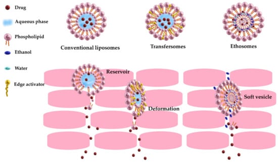 A schematic illustration of the penetration mechanisms of the nanovesicular carriers is shown in Figure 6.