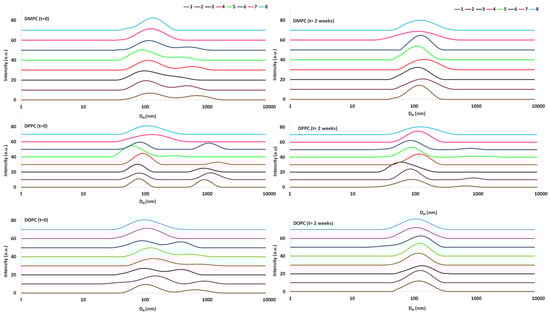 - Drazenovic, J.; Wang, H.; Roth, K.; Zhang, J.; Ahmed, S.; Chen, Y.; Bothun, G.; Wunder, S.L. Effect of lamellarity and size on calorimetric phase transitions in single component phosphatidylcholine vesicles. Biochim. Biophys. Acta 2015, 1848, 532–543. [Google Scholar] [CrossRef]