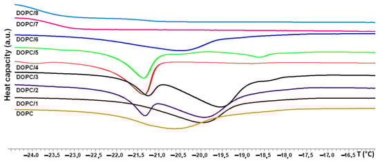 - Biltonen, R.L.; Lichtenberg, D. The use of differential scanning calorimetry as a tool to characterize liposome preparations. Chem. Phys. Lipids 1993, 64, 129–142. [Google Scholar] [CrossRef]