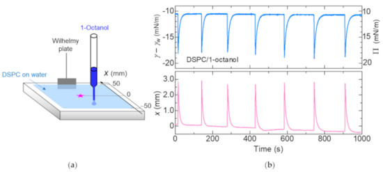 However, in the region where the surface pressure of the biological membrane is known to be about 30–35 mN/m [21], the spontaneous oscillation of surface tension was not observed in the DSPC monolayer. Therefore, in order to increase the fluidity of the membrane, the coexistence of other components is essential, and we should study on mixed monolayers in the future.