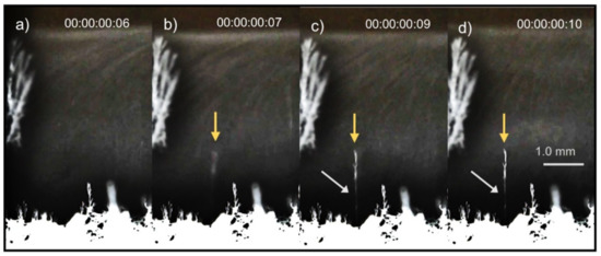 - Santos, L.P.; da Silva, D.S.; Galembeck, A.; Galembeck, F. Ice Needle Nucleation and Dendrite Growth Under an Electric Field. In Proceedings of the 2020 IEEE Industry Applications Society Annual Meeting, Detroit, MI, USA, 10–16 October 2020; pp. 1–9. [Google Scholar] [CrossRef]