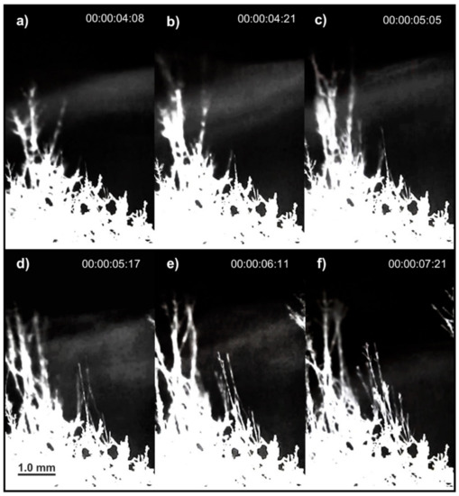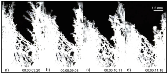 | Image Component | Measured Length or Height/μm | Growth Rate/μm s−1 |