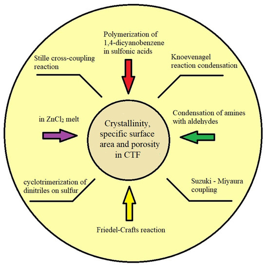 Looking forward, the main conclusion of this review is the following: a wide variety of combinations of kinetic and thermodynamic control in various steps of synthesis of 2D nanosheets result in the conclusion that the structure and properties of CTF depend on the synthetic pathway and conditions. Thus, the literature considered below is arranged based on types of chemical reactions, taking into account synthetic conditions.