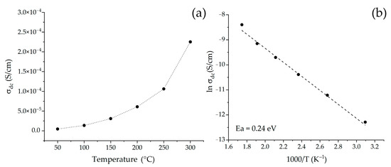 The σdc values calculated using Jonscher’s law were further used to construct the temperature dependence of conductivity, as well as to calculate its activation energy using the Arrhenius Equation (4):
