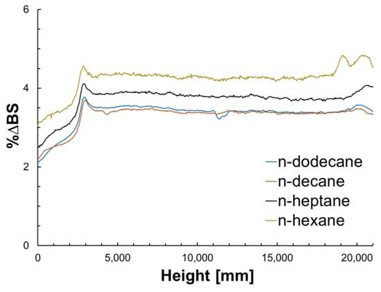 %ΔBS signal as a function of the height of the sample from 0 to for all n-alkanes.