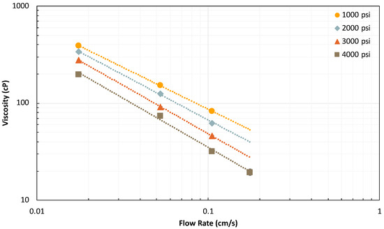 - The fluid-shear dependency confirmed strong shear-thinning rheology in the practical flow rate range for HnP processes. This shear-thinning behavior is indicative of the formulation’s ability to produce strong foam, maintain conformance control, and minimize loss of injection gas as it propagates deeper into the fracture, as well as its favorable injectivity in the near-wellbore region.