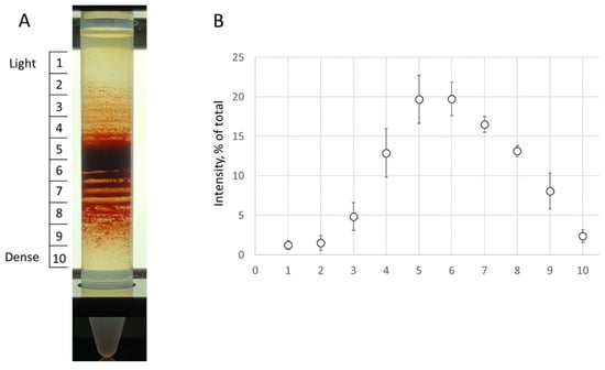- Maurer, F.; John, T.; Makhro, A.; Bogdanova, A.; Minetti, G.; Wagner, C.; Kaestner, L. Continuous Percoll Gradient Centrifugation of Erythrocytes-Explanation of Cellular Bands and Compromised Age Separation. Cells 2022, 11, 1296. [Google Scholar] [CrossRef] [PubMed]