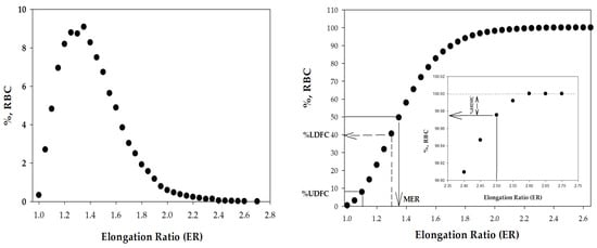 - Renoux, C.; Faivre, M.; Bessaa, A.; Da Costa, L.; Joly, P.; Gauthier, A.; Connes, P. Impact of surface-area-to-volume ratio, internal viscosity and membrane viscoelasticity on red blood cell deformability measured in isotonic condition. Sci. Rep. 2019, 9, 6771. [Google Scholar] [CrossRef]