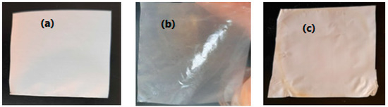 Real photos of PP-Celg membrane: (a) membrane before impregnation; (b) mwet; (c) mused.