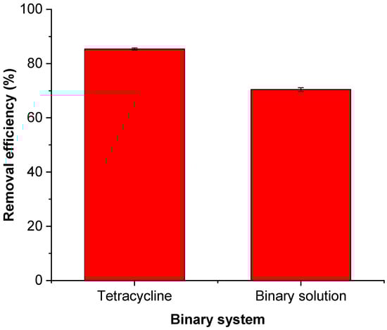 To investigate the interference effect of one drug on another, a binary solution containing 10 ppm of tetracycline and tylosin was prepared. The adsorption experiment was conducted at pH 6, using 2 g/L of the FMWCNT–chitosan composite (the best-performing adsorbent), with a contact time of 30 min at 25 °C.