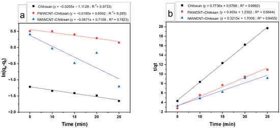 Kinetic parameters for the adsorption of tetracycline by chitosan, FMWCNT–chitosan, and NMWCNT–chitosan.