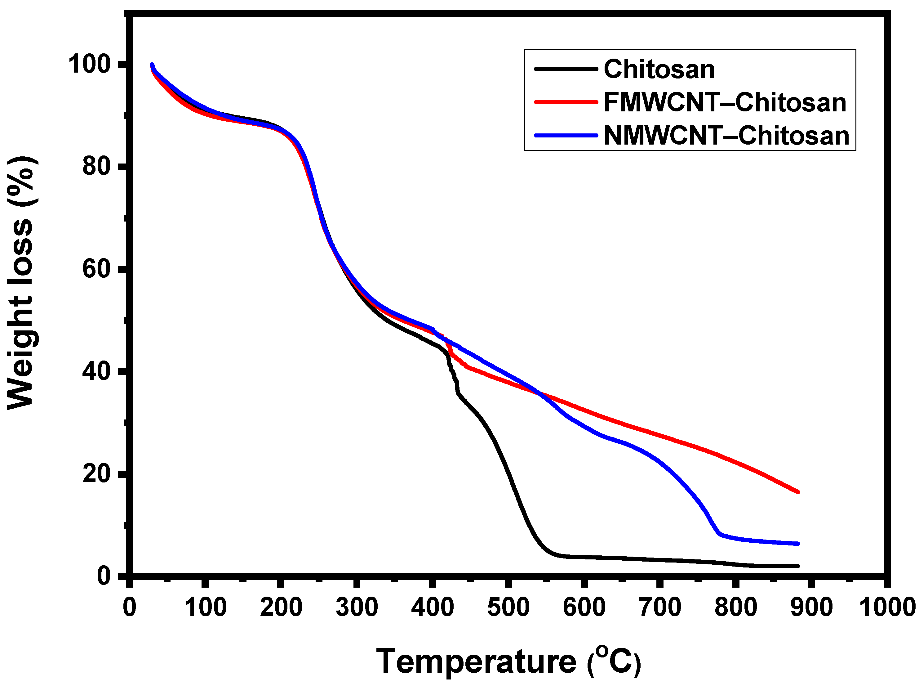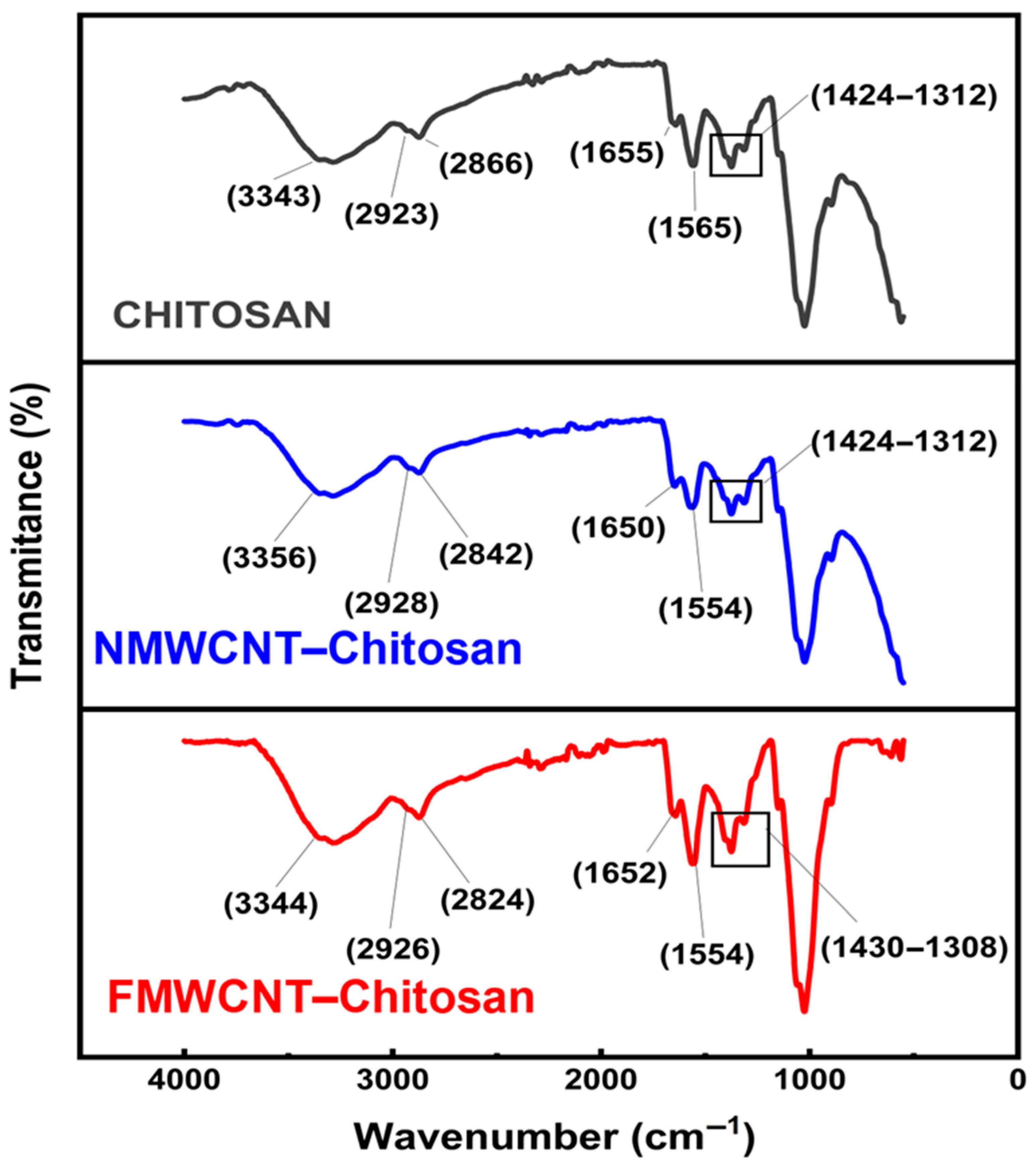 2.4. Preparation of 1% Functionalised MWCNT–Chitosan Composite