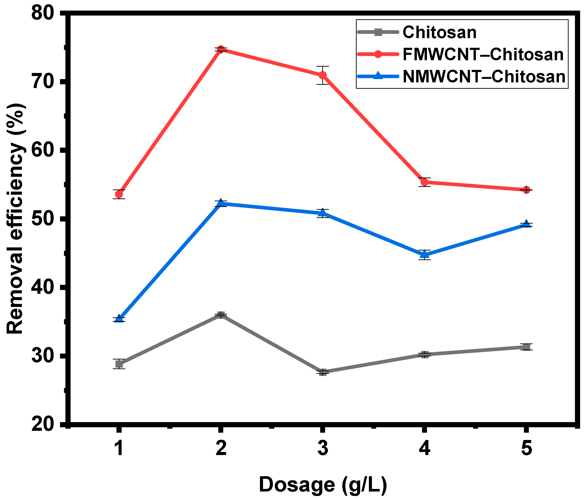 - Munwana, A.; Macevele, L.E. Diclofenac Sodium Removal from Water Samples Using Chitosan Nanocomposites Modified with Multi-Walled Carbon Nanotubes. Dig. J. Nanomater. Biostructures 2025, 20, 227–238. [Google Scholar] [CrossRef]
