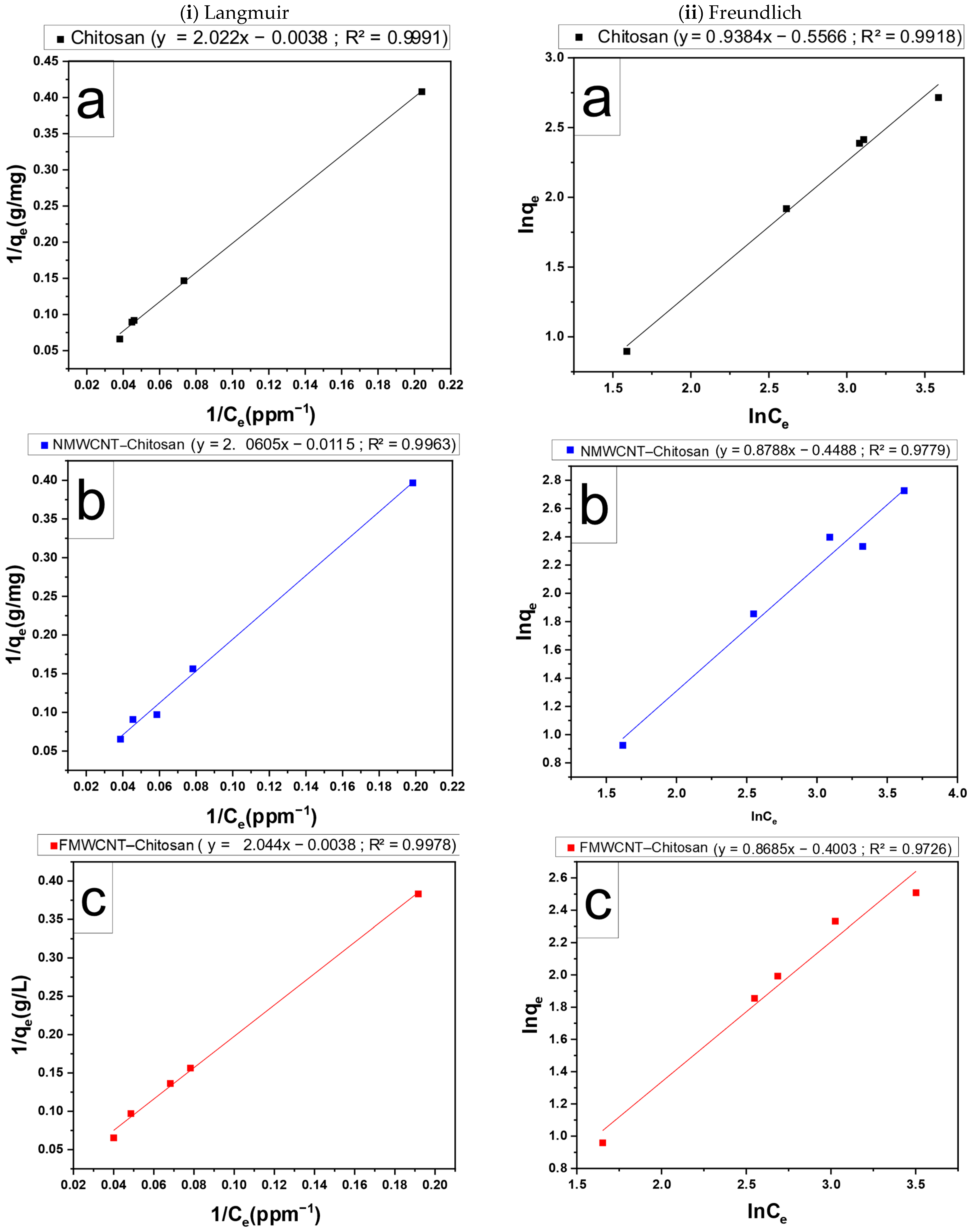 NMWCNT–chitosan | 0.947 | 149.25 | 0.005581 | 0.9963 | 0.6384 | 1.378 | 0.9779 |