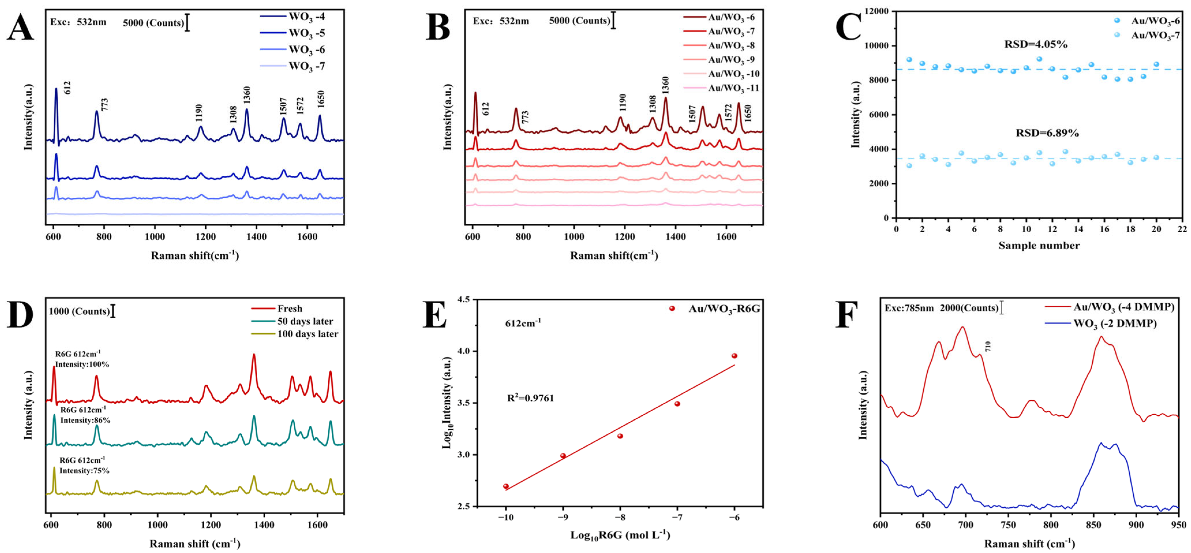 - Zheng, X.; Zhong, H.; Wang, Z.; Li, J.; Hu, Y.; Li, H.; Jia, J.; Zhang, S.; Ren, F. Fabrication of Stable Substoichiometric WOx Films with High SERS Sensitivity by Thermal Treatment. Vacuum 2022, 198, 110884. [Google Scholar] [CrossRef]