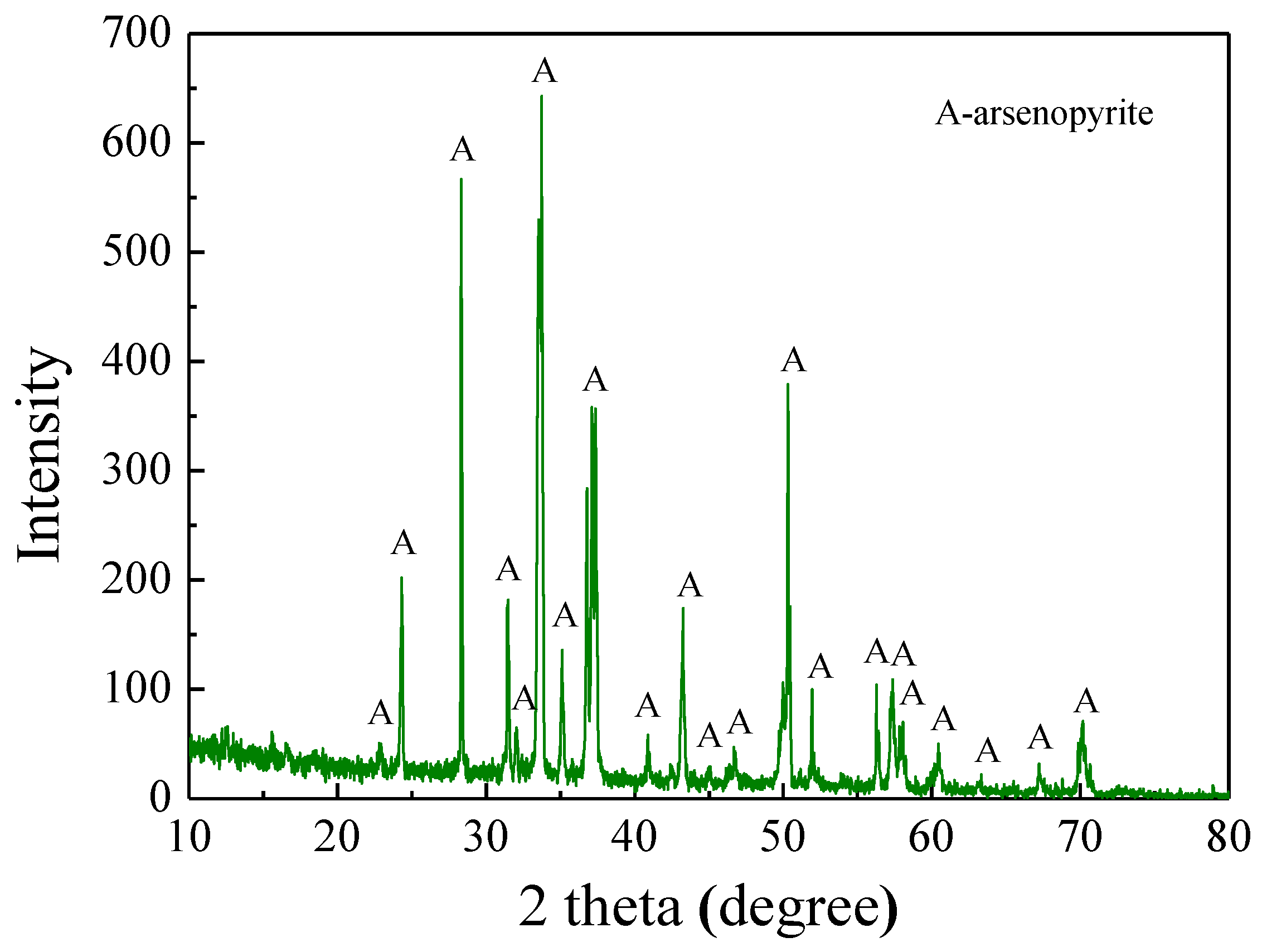 Figure 1. It is obvious that the particle size of the samples is indeed within the expected range. The phase purity of arsenopyrite was verified by X-ray diffraction (XRD; X’Pert PRO, PANalytical B.V., Almelo, The Netherlands) to obtain the spectrum (