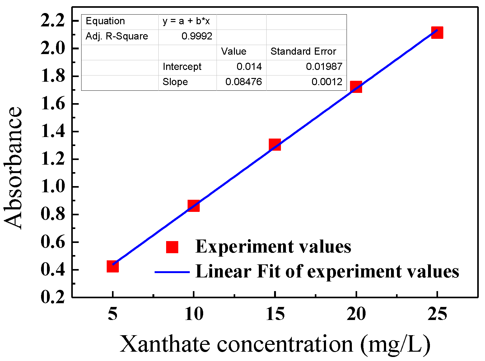 Figure 4). Finally, the amount of xanthate adsorbed on the mineral surface was calculated based on the difference between the initial and equilibrium concentrations [
