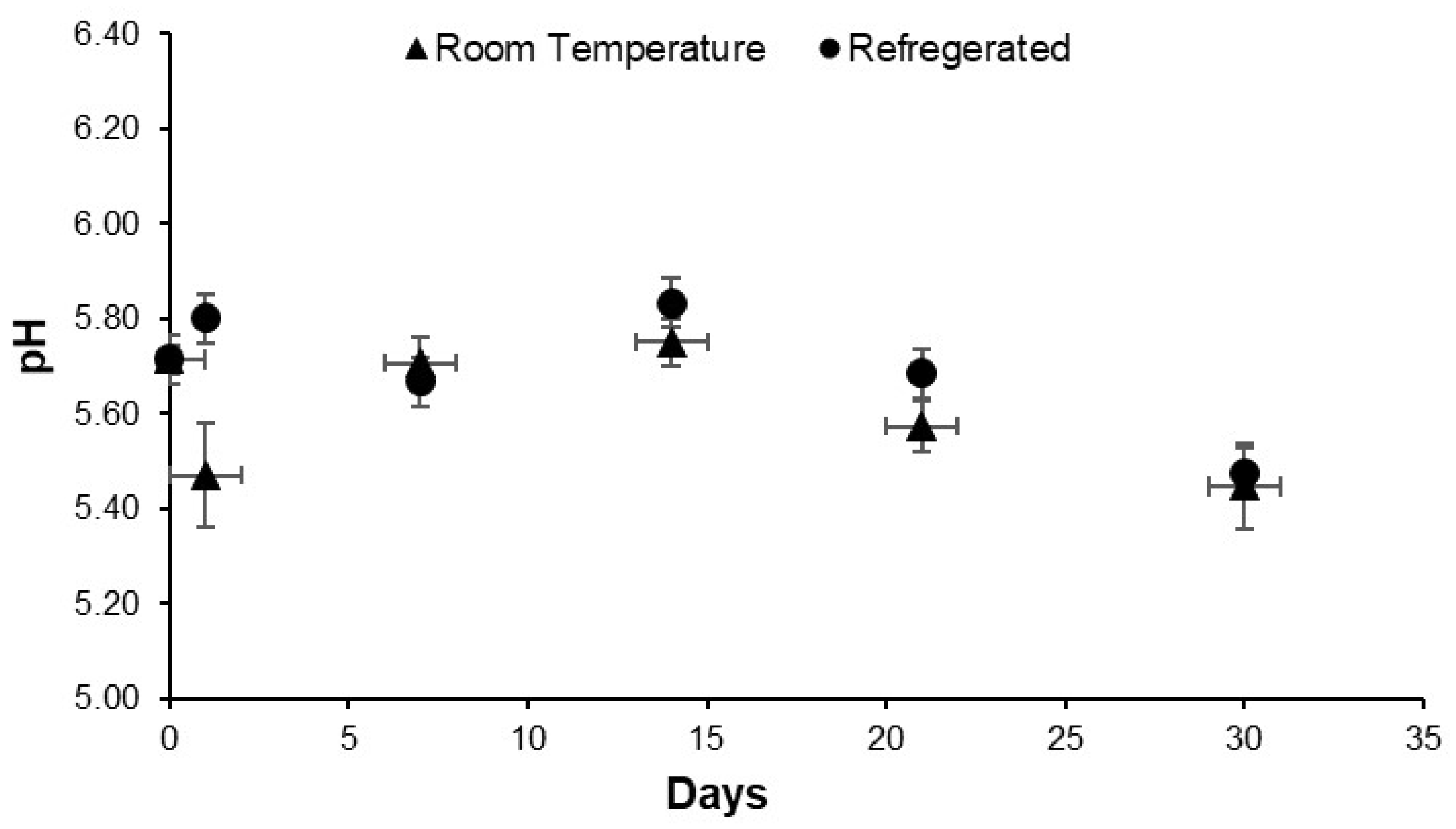 Effect of storage temperature on the pH of AA suspension.