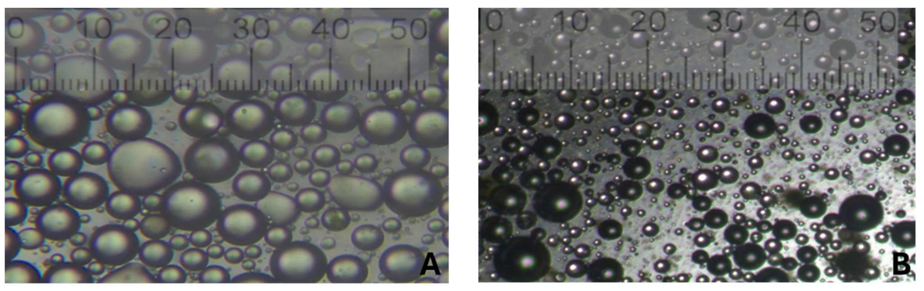3.6. Microscopy of Oil-in-Water Emulsion