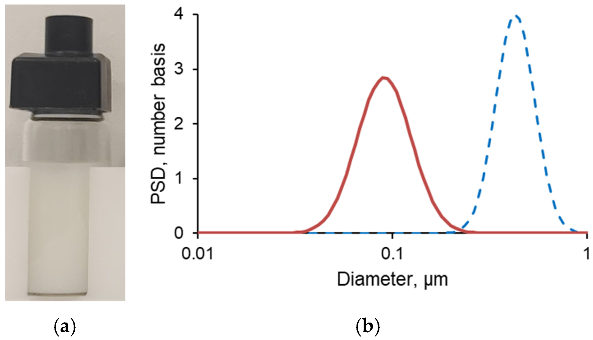 44]. A concentration of 0.1% is apparently optimal for the formation of a stable nanoemulsion in volume, since it ensures complete coverage of the interfacial surface of diesel fuel droplets and maximum film strength [