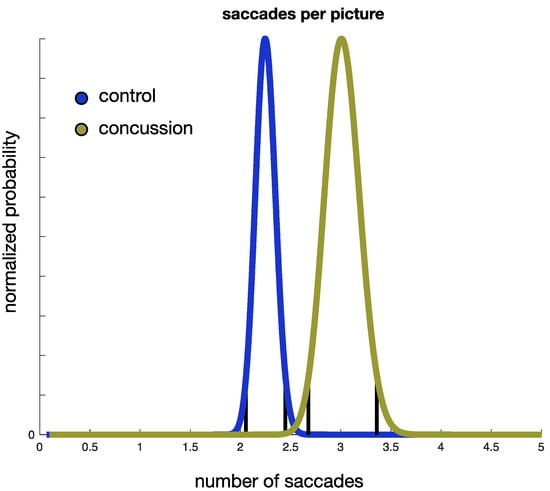 Prior studies have shown prolonged MULES test times following concussion [,]; eye movement behavior underlying these worsened times has not been formally examined. We examined the eye movements of participants with a history of concussion during MULES performance. Prolonged rapid picture naming times in MULES were significantly associated with an increased number of saccades, but not with prolonged ISI values. As such, a combination of MULES times and the number of saccades, but not ISI, was predictive of a concussion. This contrasts with prior studies examining rapid number naming in concussion, which showed significant changes in both the number of saccades and ISI []. These eye movement differences suggest that the brain may adopt different strategies when performing rapid picture- versus number-naming tasks following head injury. Understanding the deficits uncovered in rapid picture-naming tasks may ultimately assist in identifying the precise neuroanatomic substrates that are disrupted following concussion. In addition, a better understanding of the neurocognitive network underlying visual–verbal tasks may assist in optimizing outcome measures to track recovery and to design more tailored rehabilitation regimens in patients with concussion.