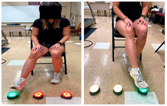 A total of 16 healthy male and female participants successfully completed the study (age: 20 ± 1 years; height: 169.48 ± 8.2 cm; weight: 67.93 ± 12.7 kg; males: 5 and females: 11). The inclusion criteria consisted of both males and females being between 18–45 years of age and a physically active status based on the American College of Sports Medicine (ACSM) criteria for physical activity, which included a minimum of 3–5 days of aerobic exercise and 2 days of resistance training per week for at least the past 3 months and the completion of the physical activity readiness questionnaire (PAR-Q). The exclusion criteria consisted of the presence of any recent visual, vestibular, neurological, or musculoskeletal disorders. All participants read and signed the informed consent, approved by Mississippi State University’s (Mississippi State, MS, USA) Institutional Review Board (IRB) under the protocol IRB# 21-320.