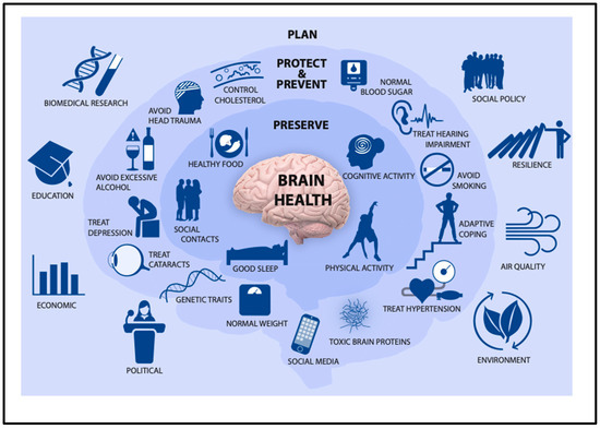 - Avan, A.; Hachinski, V.; Brain Health Learn and Act Group. Brain health: Key to health, productivity, and well-being. Alzheimer’s Dement. 2021, 18, 1396–1407. [Google Scholar] [CrossRef] [PubMed]