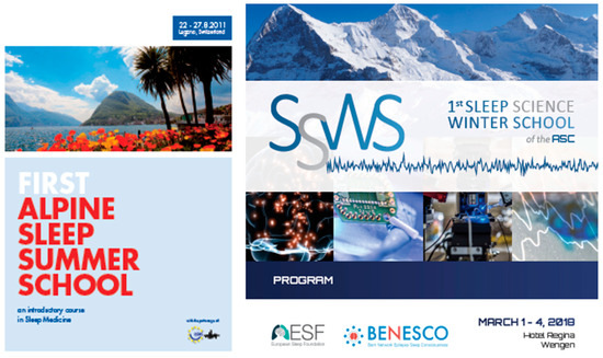 The creation of the MAS by the Universities of Bern and Svizzera Italiana (USI) was preceded by the organization of educational events including the Bernese Sleep–Wake Days (since 1997), three International Narcolepsy Meetings (1998, 2004, 2009), and the First Sleep Alpine Summer School (2011, lasting for 6 days) [13] (Figure 1).