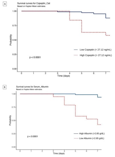- Kolditz, M.; Halank, M.; Schulte-Hubbert, B.; Bergmann, S.; Albrecht, S.; Höffken, G. Copeptin predicts clinical deterioration and persistent instability in community-acquired pneumonia. Respir. Med. 2012, 106, 1320–1328. Available online: https://linkinghub.elsevier.com/retrieve/pii/S0954611112002223 (accessed on 4 September 2021). [CrossRef][Green Version]
