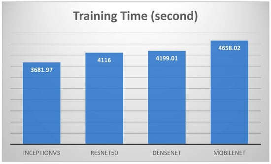 - Training Time: ResNet50 generally had the longest training time, followed by DenseNet. InceptionV3 and MobileNet exhibited faster training times.