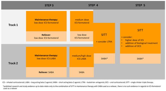 A strategy for the use of registered single inhaler triple therapy (SITT) is outlined in the Global Initiative for Asthma (GINA) report [7]. The novelty of this inhaled therapy is the addition of a second bronchodilator from the cholinolytic group to the primary medications for the treatment of asthma, which include an anti-inflammatory glucocorticosteroid and a beta-2-agonist bronchodilator.
