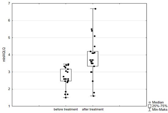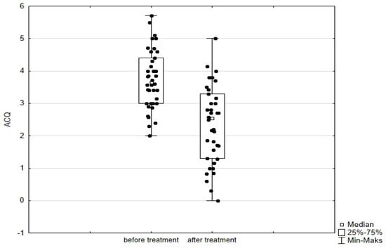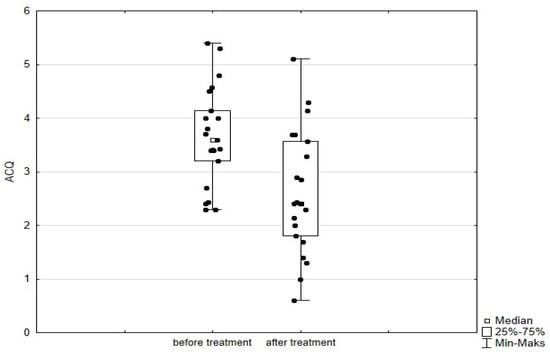 The patients completed the validated ACQ and miniAQLQ questionnaires in Polish at point 0 and at point 1. The methods of questionnaire evaluation are described in Section 2.2.