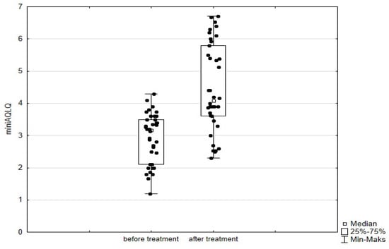 miniAQLQ questionnaire scores in patients treated with mepolizumab. Wilcoxon test for paired samples, p < 0.01.