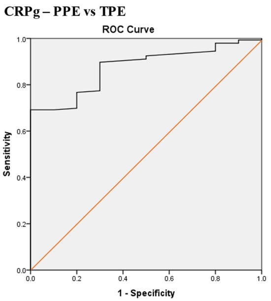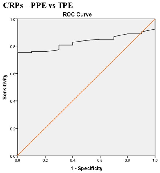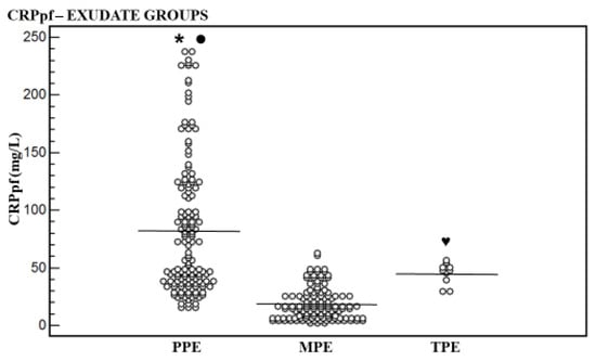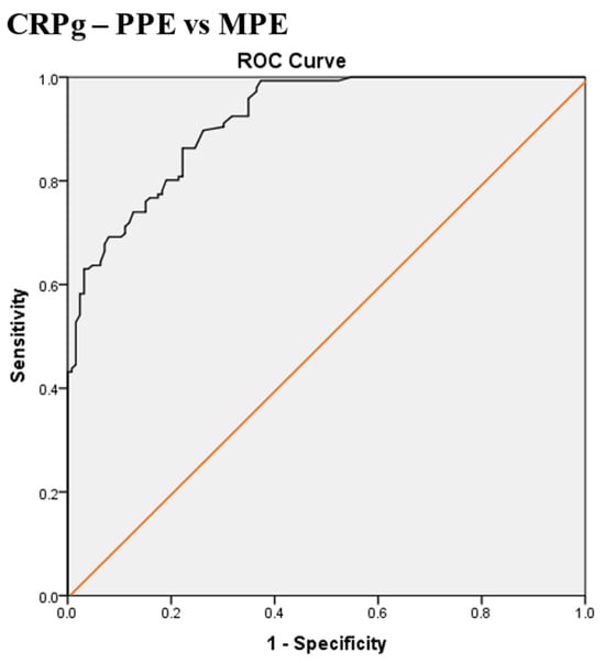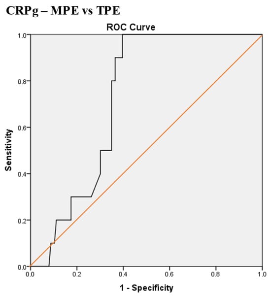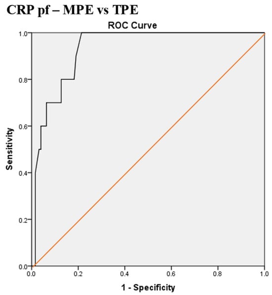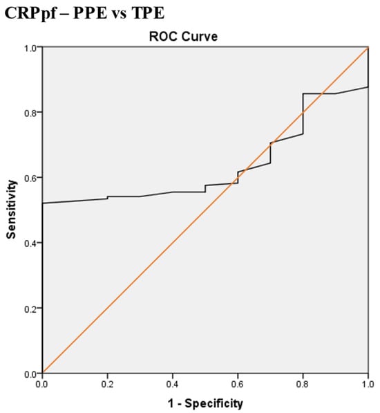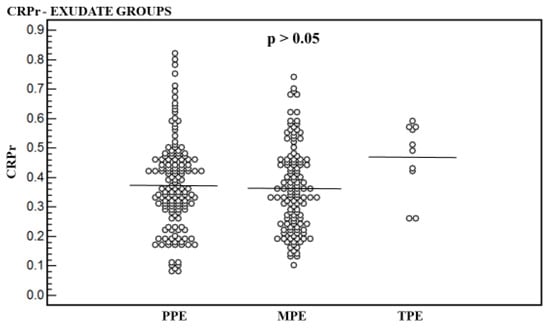 - Serum and pleural fluid C-reactive protein (CRPs, CRPpf) and their gradient (CRPg) demonstrated significant diagnostic value, while their ratio (CRPr) did not, in discrimination between various causes of exudative pleural effusion (PE).